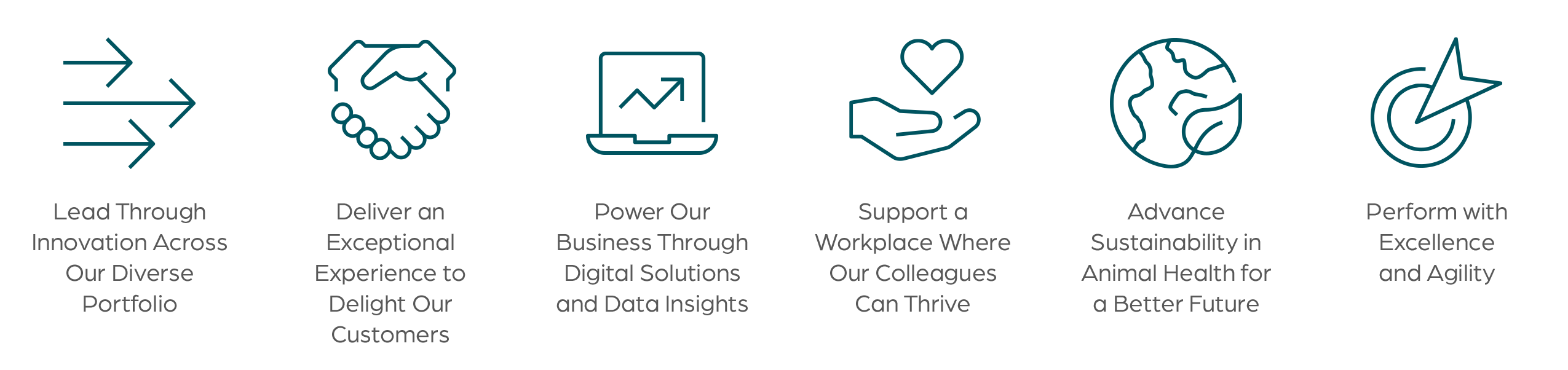 Our vision is to be the most trusted and valued animal health company, shaping the future of animal care through our innovation, customer obsession and purpose-driven colleagues. Our future performance is focused on 6 strategic priorities: